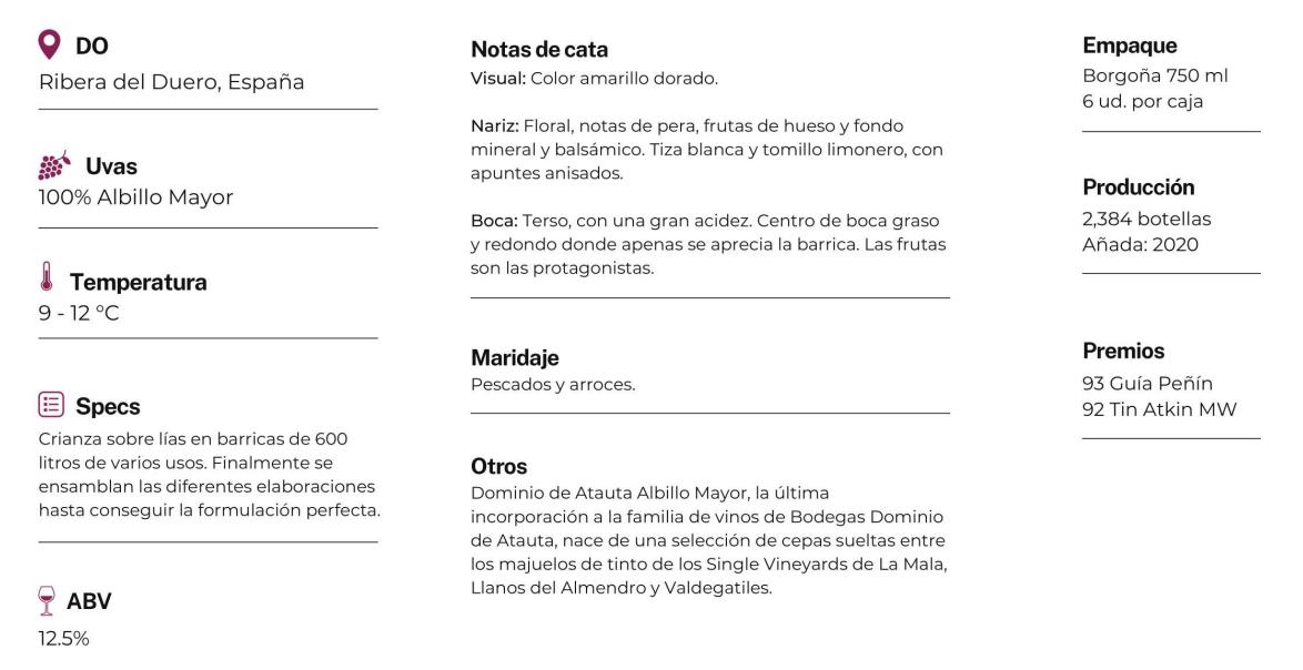 Vino Blanco Atauta Albillo Mayor Ribera del Duero 750 ml
